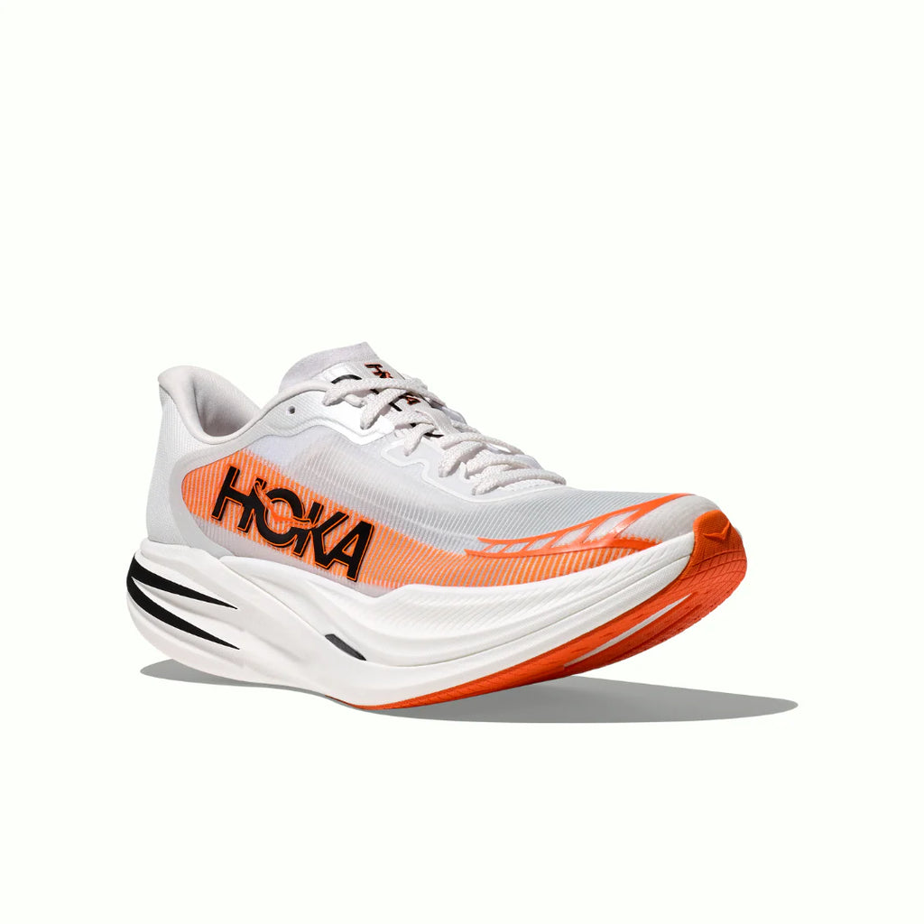 The Hoka Cielo in Frost Lava brings a vibrant, performance-ready edge to the brand’s cushioned sneaker lineup. It features a frosty grey mesh upper accented with bold lava-orange overlays and neon detailing around the collar, midsole, and lacing system. Built on Hoka’s signature plush foam platform and cushioned midsole, it delivers lightweight support, smooth stride transitions, and all-day comfort. With its dynamic color palette and technical design, this shoe fuses athletic performance with standout style.