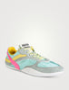 The Miu Miu Gymnasium Sneakers Anise Fuchsia deliver a bold, fashion-forward statement with a fresh anise green base accented by vibrant fuchsia details, crafted for both comfort and standout style.