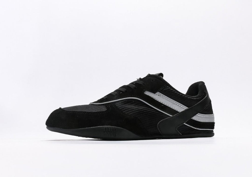 The Miu Miu Gymnasium Sneakers Black combine sleek minimalism with modern design, featuring an all-black finish for a versatile and effortlessly stylish look.
