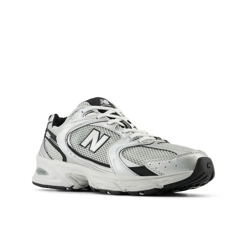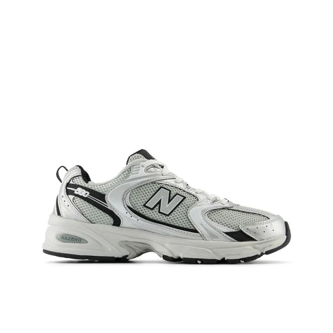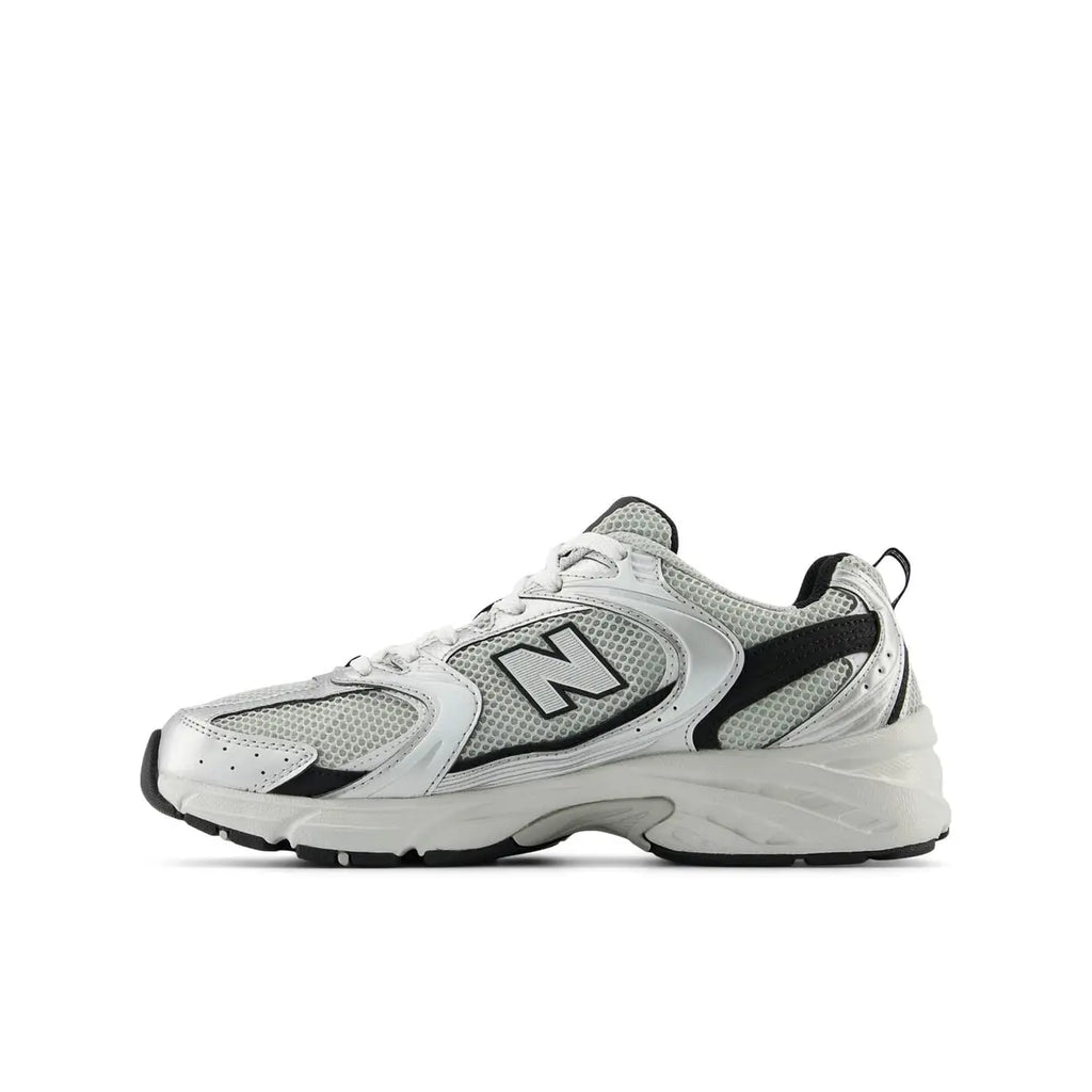 The New Balance 530 in Black and White delivers a clean, sporty aesthetic with a monochromatic twist. It features a sleek black mesh and leather upper, complemented by crisp white accents and the signature “N” logo. With its cushioned midsole and durable outsole, this sneaker blends retro running vibes with modern comfort and everyday style.