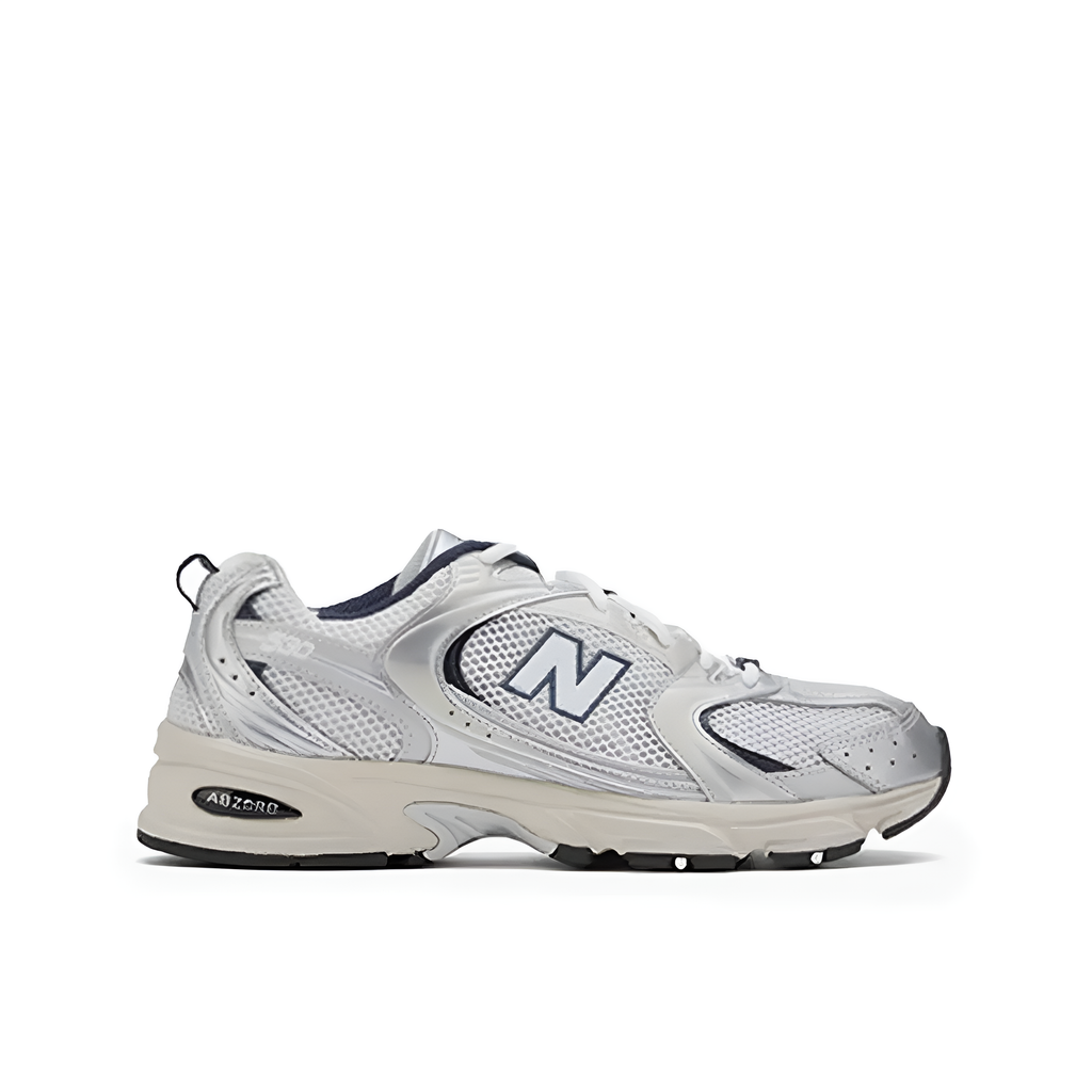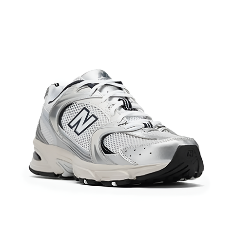 The New Balance 530 in Silver and Blue offers a fresh take on the classic ’90s runner silhouette. It showcases a sleek silver mesh and synthetic upper, accented with vibrant blue overlays and the signature “N” logo for a sporty pop. Designed with ABZORB cushioning and a durable outsole, this sneaker delivers retro running performance with modern everyday comfort.