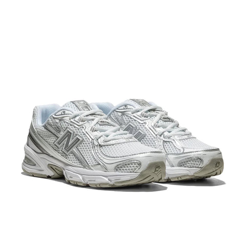 The New Balance 740 in White Silver Metallic showcases a clean, modern aesthetic with its crisp white leather and mesh upper accented by sleek silver metallic overlays and the signature “N” logo. Built with ABZORB midsole cushioning and a durable rubber outsole, it offers plush comfort and dependable traction. Blending lightweight performance with refined style, this sneaker brings classic running heritage into contemporary wardrobe-ready form.