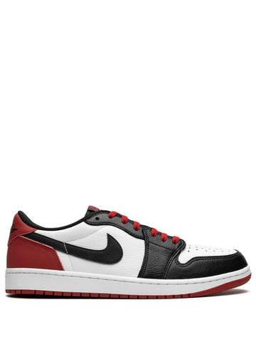 The Nike Air Jordan 1 Low “Black Red brings bold contrast to the classic low-top silhouette with its striking colorway. Featuring a smooth black leather base elevated by rich red overlays, it retains signature Air Jordan detailing—like crisp stitching, the iconic Swoosh, and Jumpman logos. Built on the loyal low-top 1 platform, this pair blends premium craftsmanship with timeless hoops style and everyday versatility.