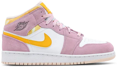 The Nike Jordan 1 Mid Arctic Pink features a white leather base with crisp black overlays and pastel pink Swoosh detailing. A matching pink Jumpman tag and outsole bring soft color contrast, while the mid-top silhouette and Wings branding deliver classic Jordan style paired with encapsulated Air cushioning for reliable comfort.