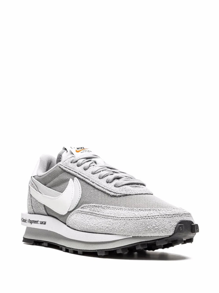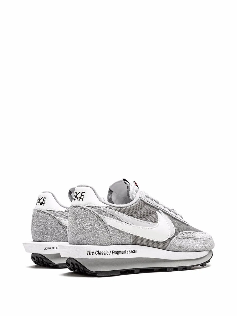 The Nike Sacai LDWaffle Light Smoke Grey features a light grey mesh upper overlaid with suede and leather in complementary tones for a layered, tonal aesthetic. Dual Swooshes, stacked tongues, and doubled laces define Sacai’s signature hybrid design. Set on a sculpted waffle midsole with longitudinal ridges, it combines high-fashion appeal with everyday fit and traction.