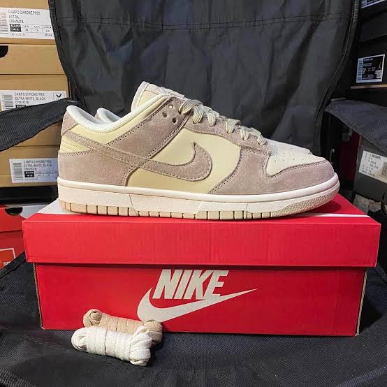 Our Nike SB Dunk Low "Dessert" is a sweet and sandy take on the classic skate shoe.  It features a tan suede upper with brown and orange accents, reminiscent of a delicious dessert.