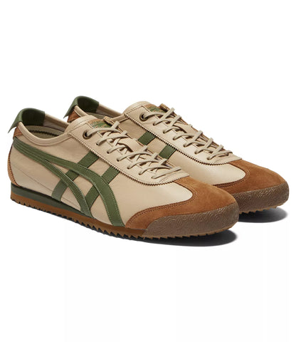 The Onitsuka Tiger in Brown Green combines earthy tones for a stylishly grounded look. Crafted with a brown leather or suede upper and deep green signature stripes, it maintains the brand’s low-profile silhouette and vintage sport-inspired design. Subtle detailing, cushioned comfort, and durable construction make it a versatile wardrobe staple suited to both casual and refined outfits.