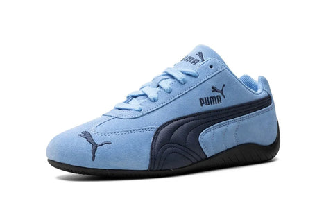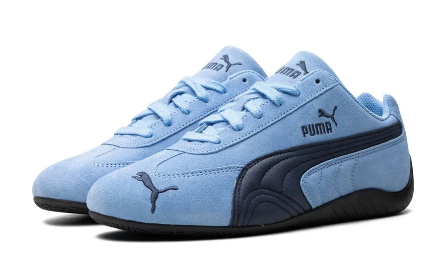 The Puma Speedcat in Light Blue and Club Navy merges motorsport-inspired flair with sleek, modern style. Featuring a light blue suede upper highlighted by bold Club Navy Formstrip detailing and stitching, it’s set on a low-profile silhouette with a slim toe box for precision. With a grippy rubber outsole and heritage branding, this sneaker delivers timeless performance aesthetics with refreshing color contrast.