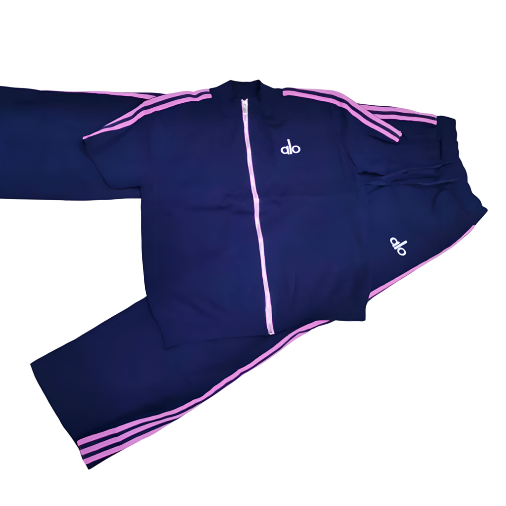 Alo Tracksuit Dark Blue Pink Stripes